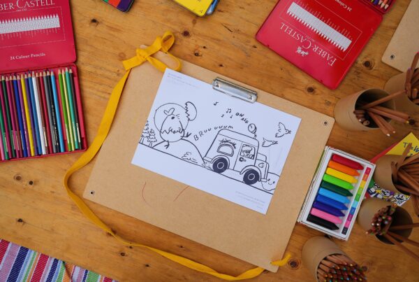 絵本作家のぬりえ、1日ぬり放題! テーブルに山ほど…