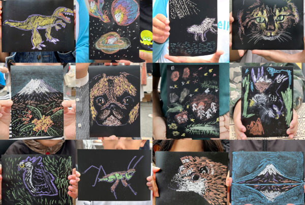 持ち帰れるミニ黒板にチョークで描くワークショップに…