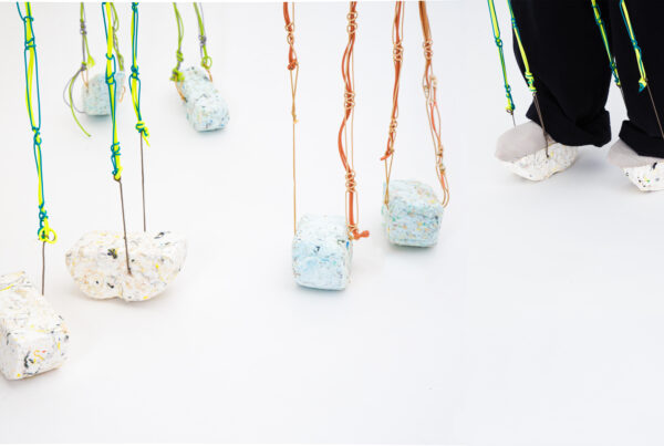 残糸と和紙でできたふしぎな竹馬。室内でも安心だから…