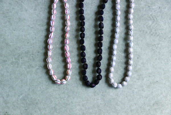 工場で使われていた糸の芯に様々なニットテープを貼り…