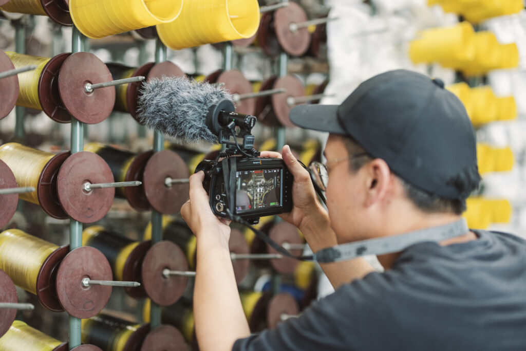 かつてこのまちでは、ハタオリの音がそこかしこに響いていました。今でも工場に行くとガッシャンガッシャンと機を織る音が、染物工場に行くと水が流れる音が、撚糸の工場では糸を紡ぐ音がそれぞれ聞こえてきます。その規則正しいリズムは時にこどもの子守唄になったり、機織り関係の仕事に携わる人にとってはずっと脳裏に残るこの街ならではの音になっていました。