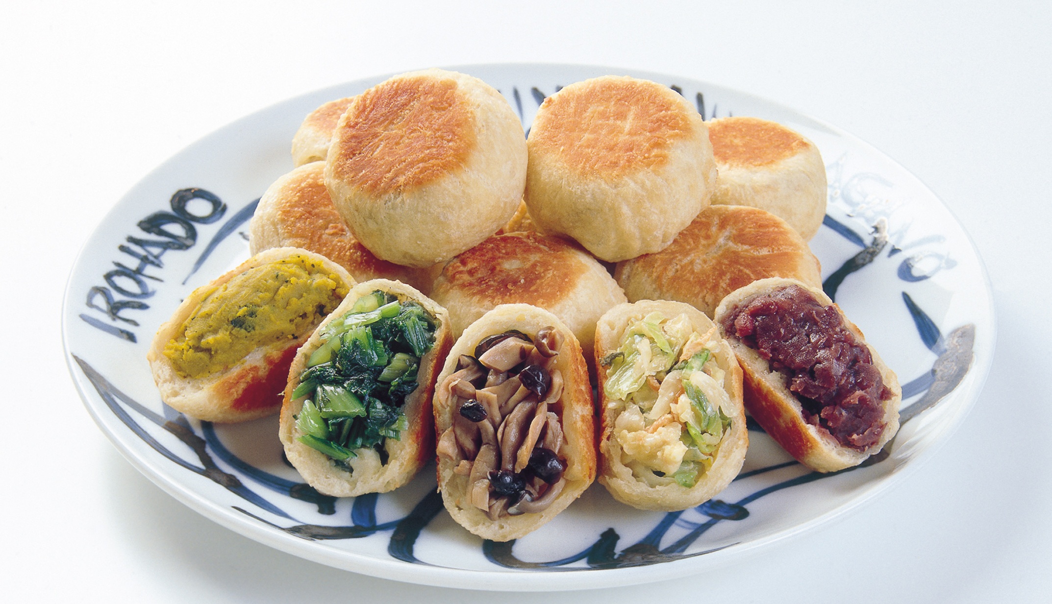 小麦粉とそば粉と練って具材を丁寧に包んで焼きあげた「いろは堂」のおやき。ぜひご賞味ください。