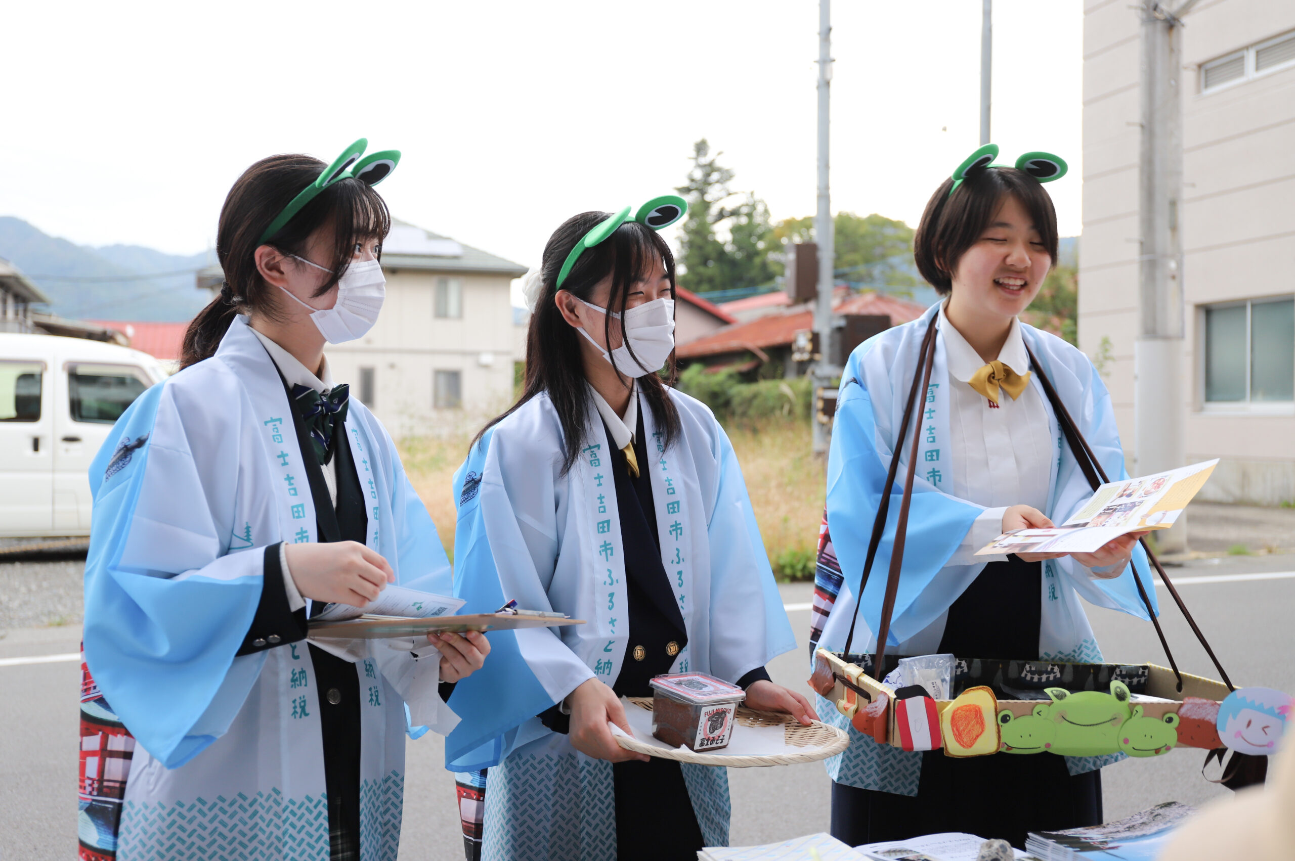 道の駅富士吉田の名産品を地域の高校生グループ「かえる組」のみんなが販売!名産品と富士吉田の魅力を来てくれる方々にお届けします!ぜひ富士吉田のお土産を手にとってみてください!